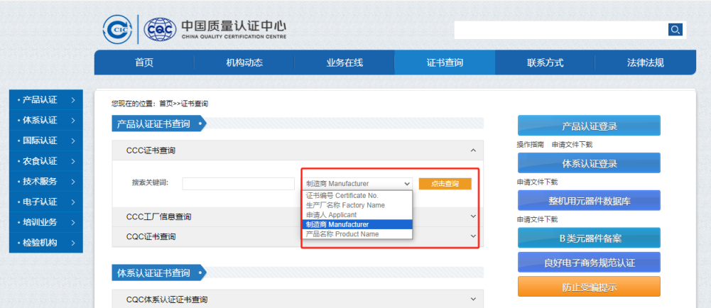 登陆中国质量认证中心的官方网站,点击“证书查询”,选择制造商,就是商品的生产厂家,查询到结果的表示符合国家安全标准,如果显示“没有找到该证书”,就是不合格的。也可将防伪码输入到“证书编号”里查询,这样查询更加精确。3C认证标志只是一种最基础的安全认证,并不是质量标志。